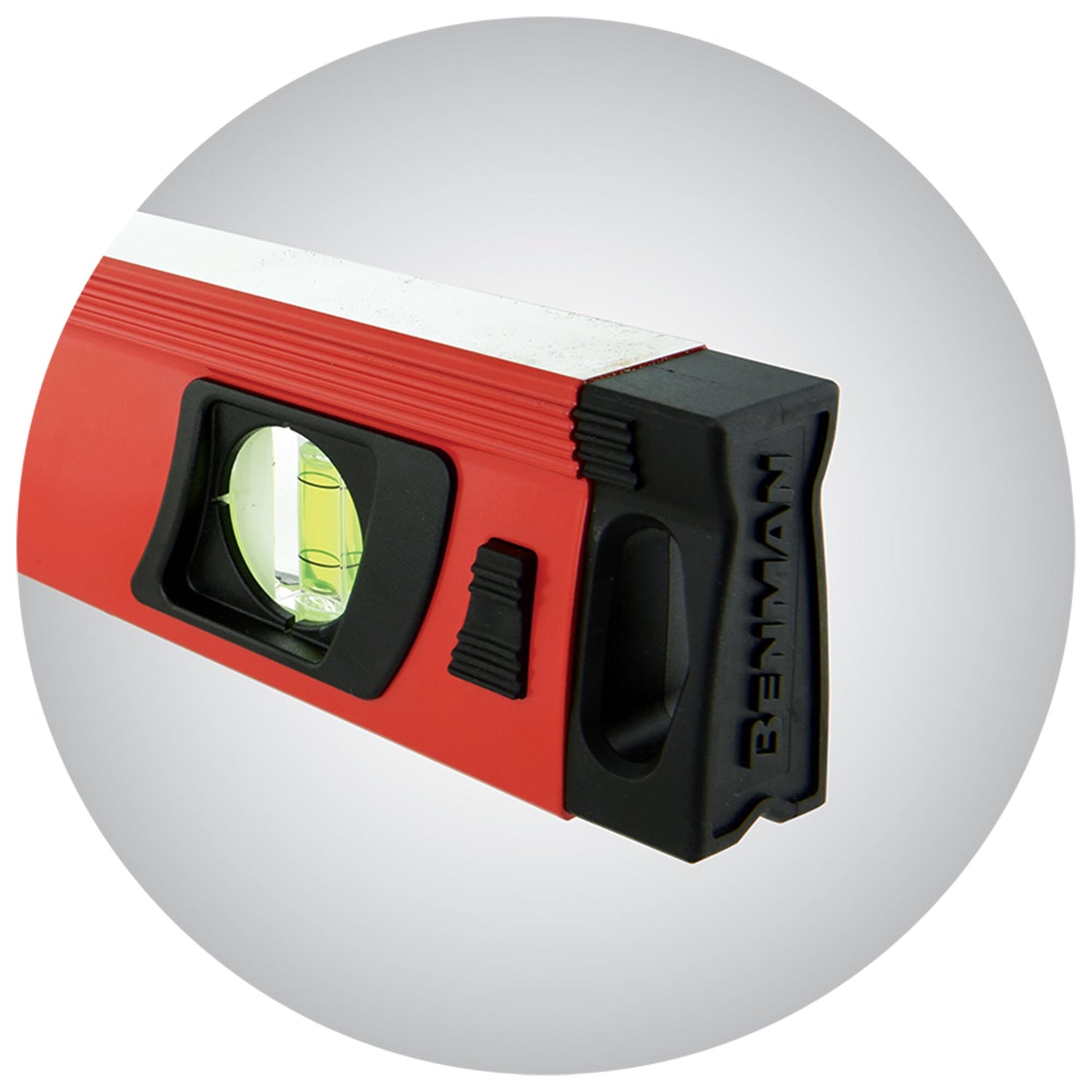 3 Waterpas Benman L33, gepatenteerde koepel met spiegel voor helder zicht in rechtopstaande positie aan de muur.