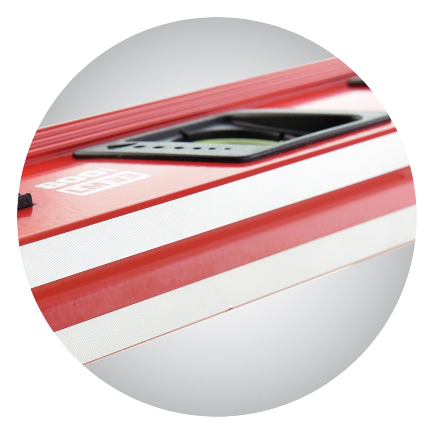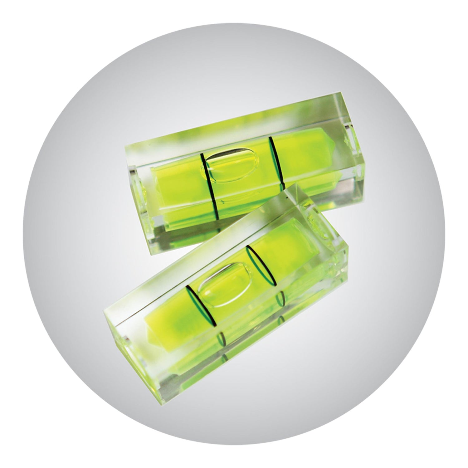 - Bubbelflesjes van schokbestendig acrylmateriaal, gekalibreerd met maximale precisie op 0,5 mm/m (0,029°)