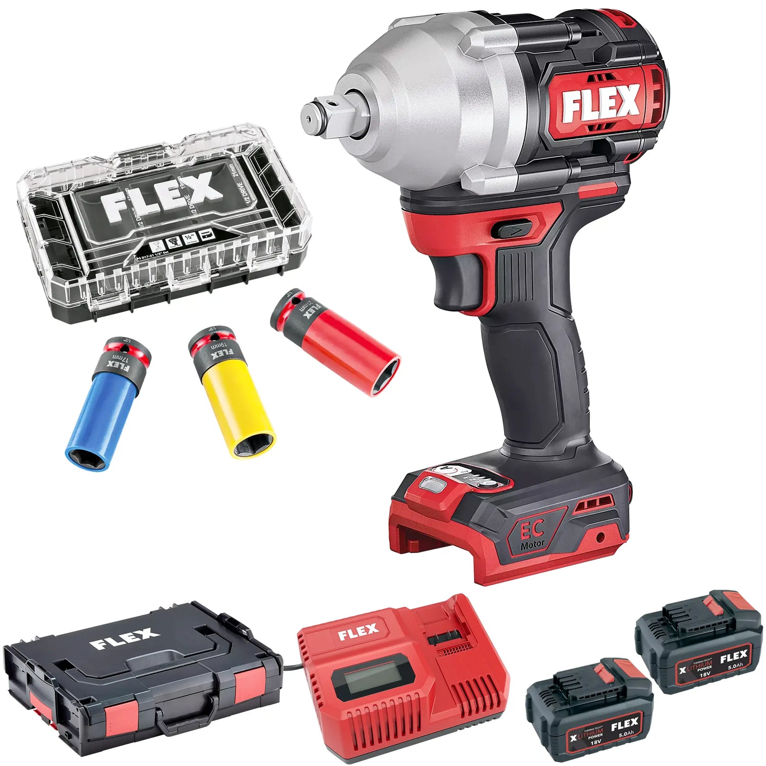 Slagsleutel Flex IW 1/2" 750 EC C 18V 5Ah borstelloze motor voor betere prestaties en een langere levensduur.