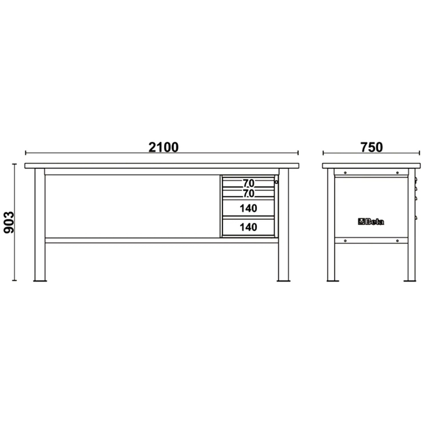 De Beta C58BC-X2,1 4C is een tweekleurige professionele werkbank ontworpen om te bieden maximale organisatie en robuustheid In de werkplaats. Met een roestvrijstalen blad, 4 laden met centrale sloten en een draagvermogen tot 800 kg, vormt het een complete en modulaire oplossing voor het creëren van een efficiënte en veilige werkplek.