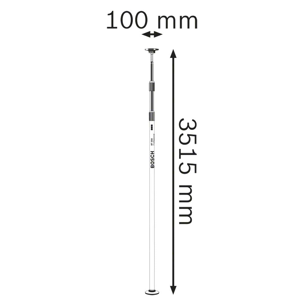 The Telescopic Pole Bosch The BT 350 is designed to provide accuracy and reliability when used with line and point laser levels. With an extension capacity of up to 3.50 metres, this rod offers stability and ease of use, making it ideal for indoor jobs requiring precise measurements.