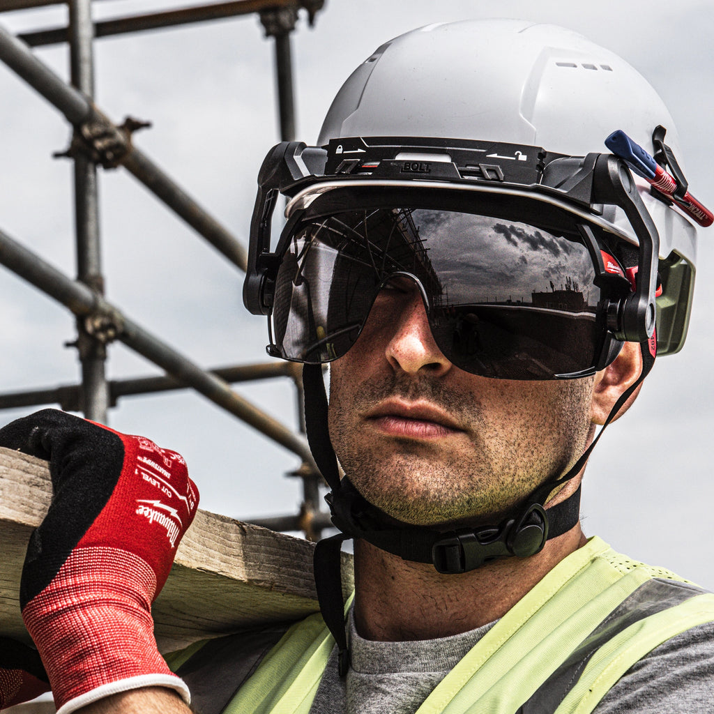The Visor Milwaukee BOLT Compact Dark It is designed to ensure optimal protection and panoramic visibility, perfect for working in outdoor environments with intense sunlight.