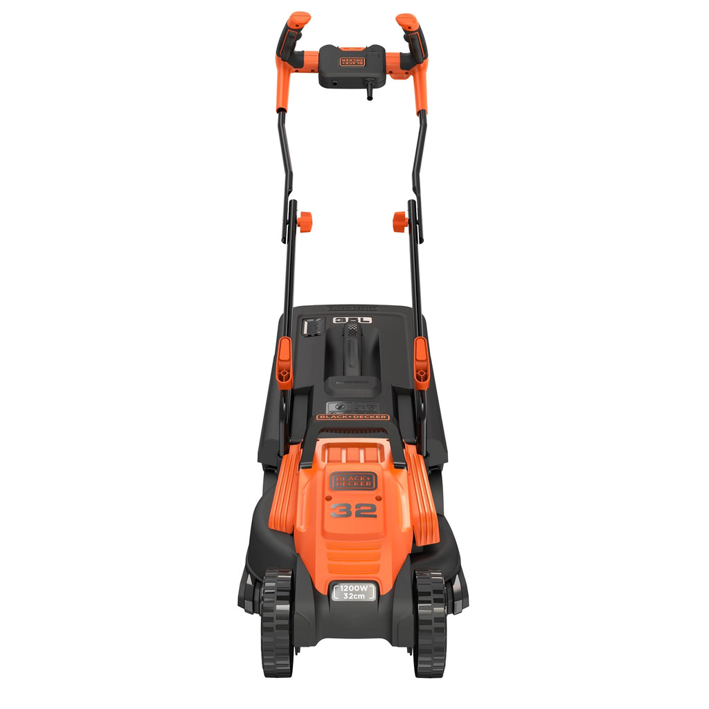 Grasmaaier Black+Decker BEMW451BH-QS 1200W Met een snijbreedte van 32 cm, ideaal voor kleine tuinen, met nieuwe Bike-handgreep die uitstekende wendbaarheid biedt.