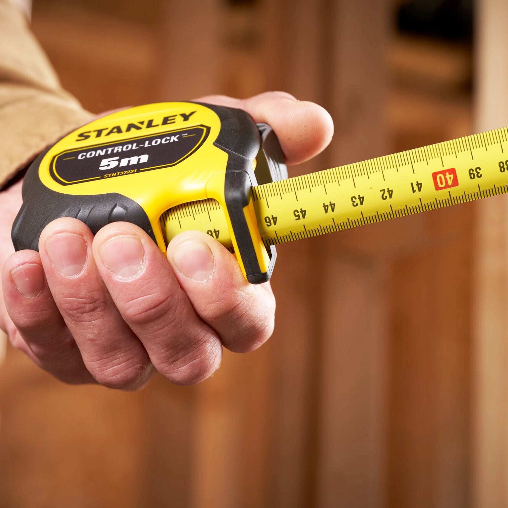 Meetlint Stanley STHT37231-0 vanaf 5 meter llichtgewicht en compact met rubberen coating. Meetlint CONTROL-LOCK™ riembreedte 25 mm.
