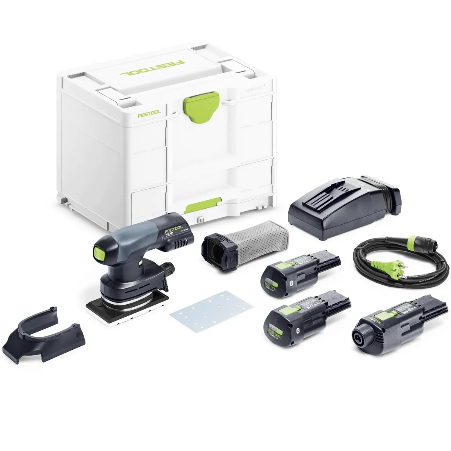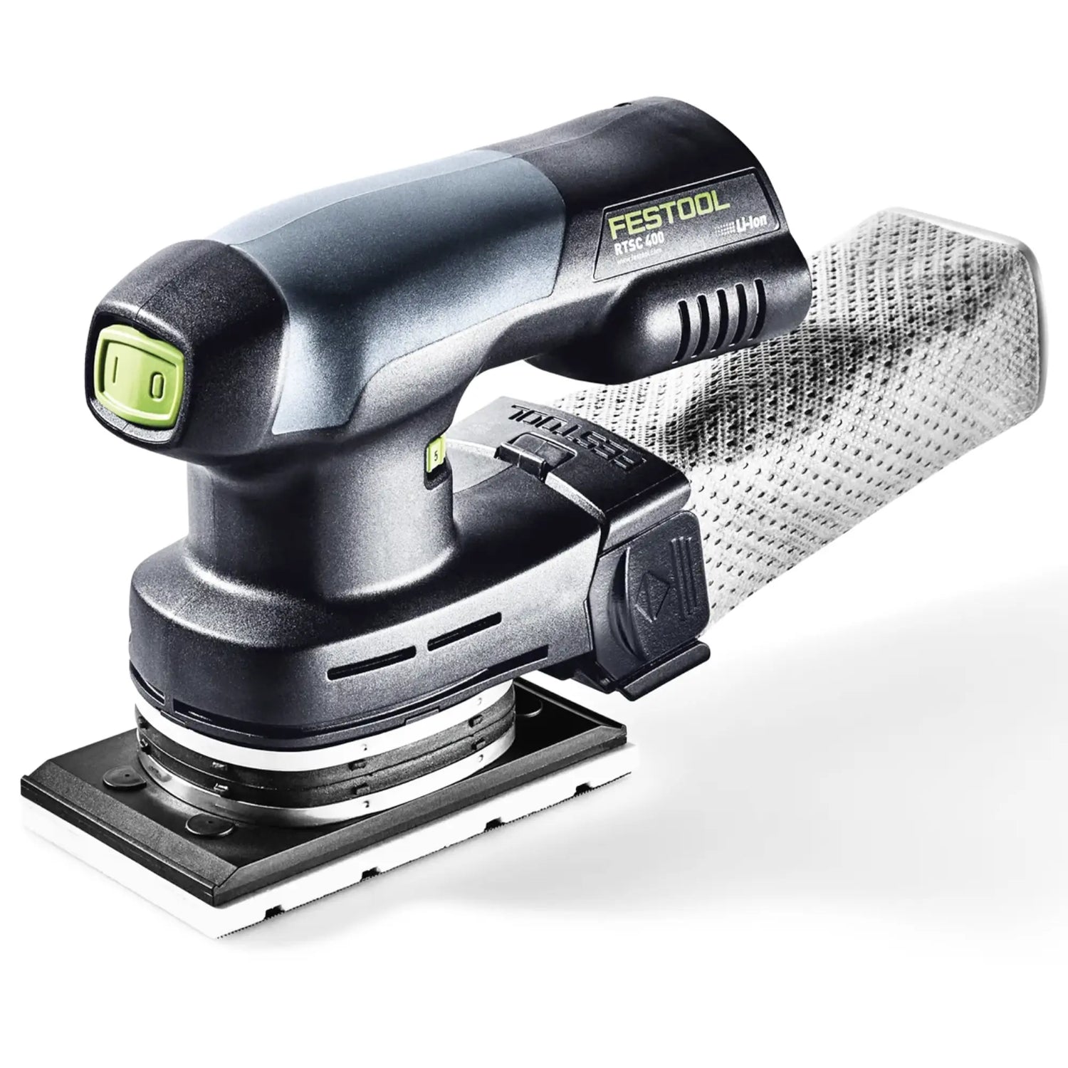 De Sander Festool RTSC 400-Basic-ERGO 18V, ergonomische, eenhandige, accuaangedreven excentrische schuurmachine.